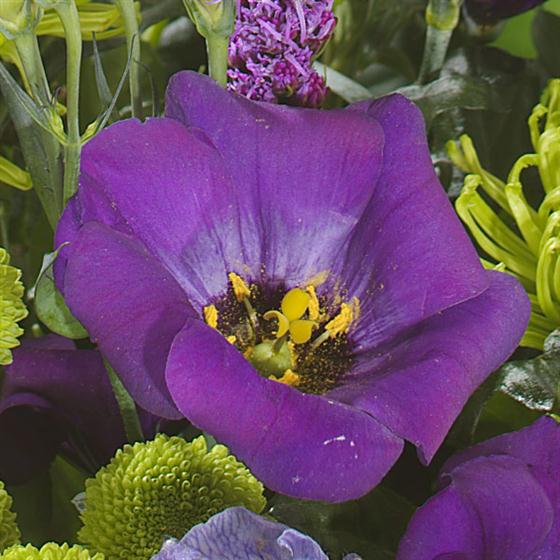 Make a splash with this aqua pack of the coolest flowers - green Chrysanthemums and Carnations, purple Lisianthus and Liatris and hooded Aconitum.