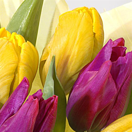 A very pretty and bright arrangement of mixed Tulips. An ideal spring in to summer bouquet.