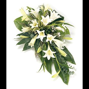 A classic and stylish single ended spray of Longiflorum Lilies and complementary foliage.
