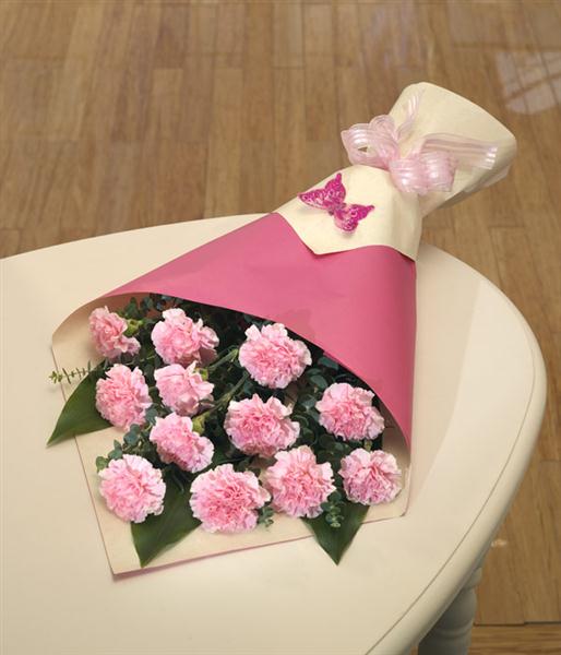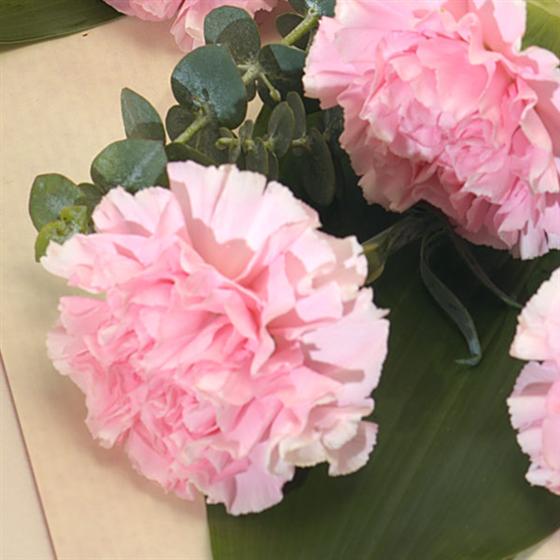 Less is more with a simple and stylish wrap of long lasting pink Carnations.