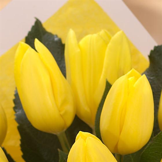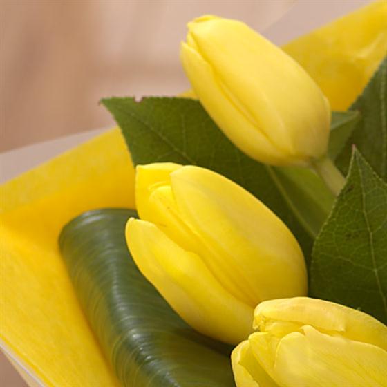 Strikingly simple bright yellow Tulips in a cream gift bag. This dazzling hand-tied will bring a smile to the face of someone special.